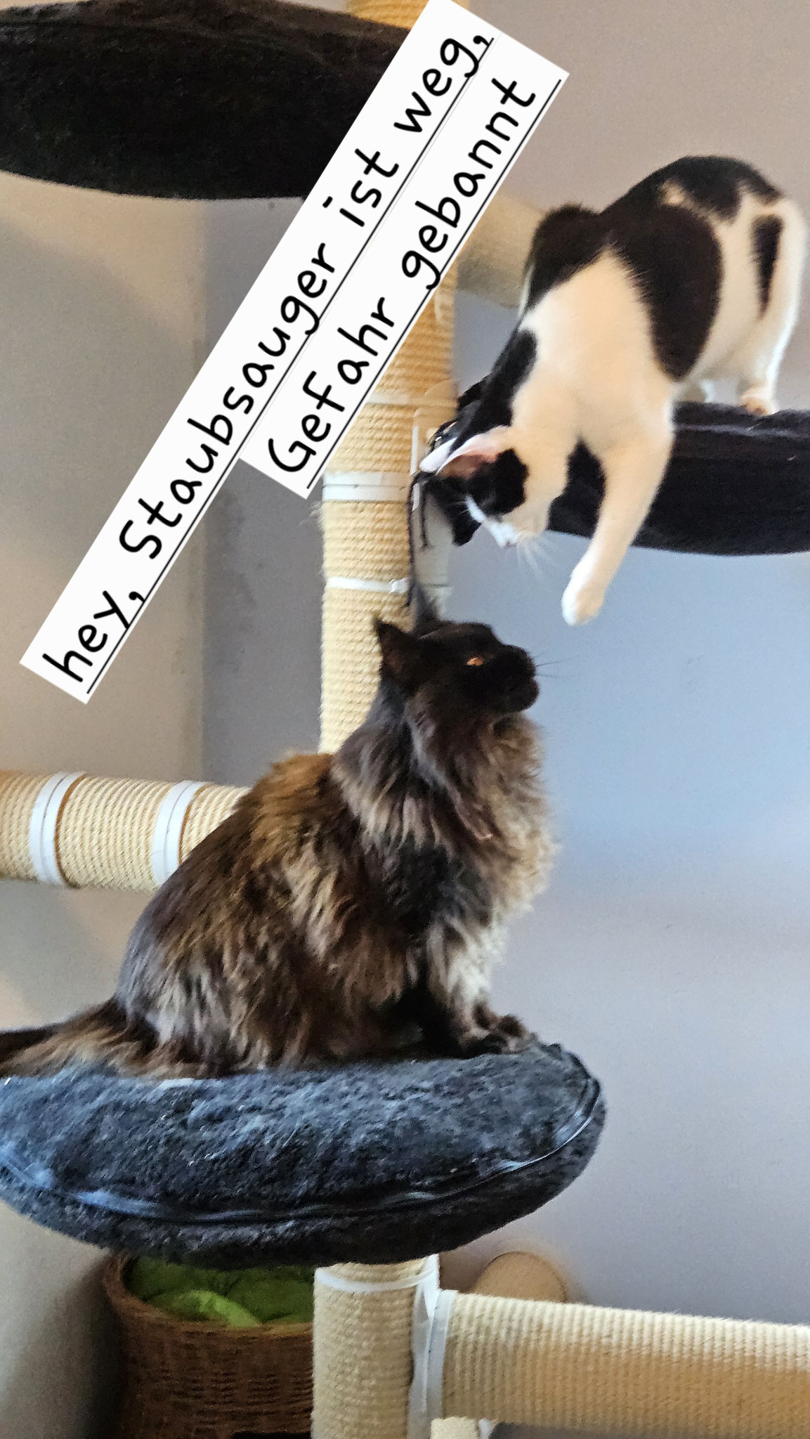 Neue Bekanntschaften, Spiel- und Versteckmöglichkeiten, Kletterabenteuer auf den Kattens-No-Limit-Kratzbäumen, viele Möglichkeiten für die Katzen.